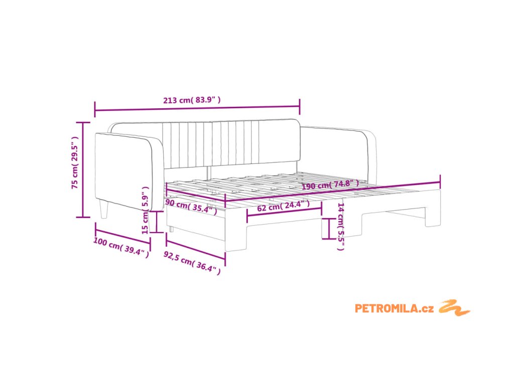 - Rozměry (nevysunuté): 213 x 100 x 75 cm (D x Š x V)
