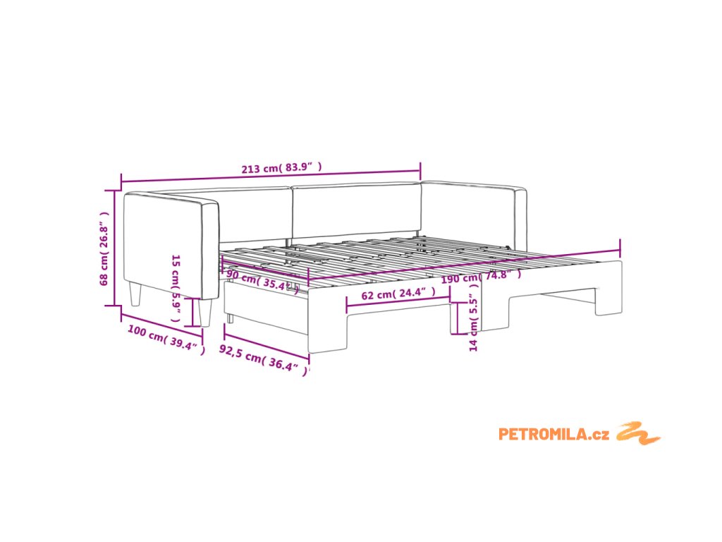 - Rozměry (nevysunuté): 213 x 100 x 68 cm (D x Š x V)