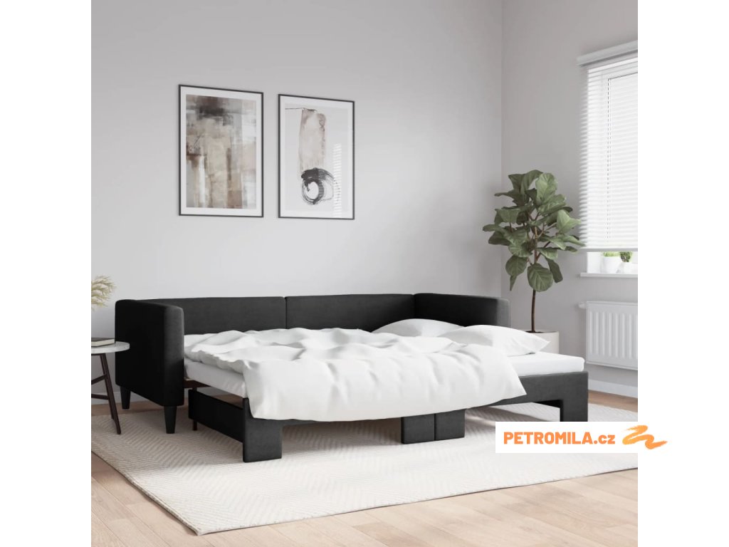 Válenda s přistýlkou černá 90 x 190 cm textil