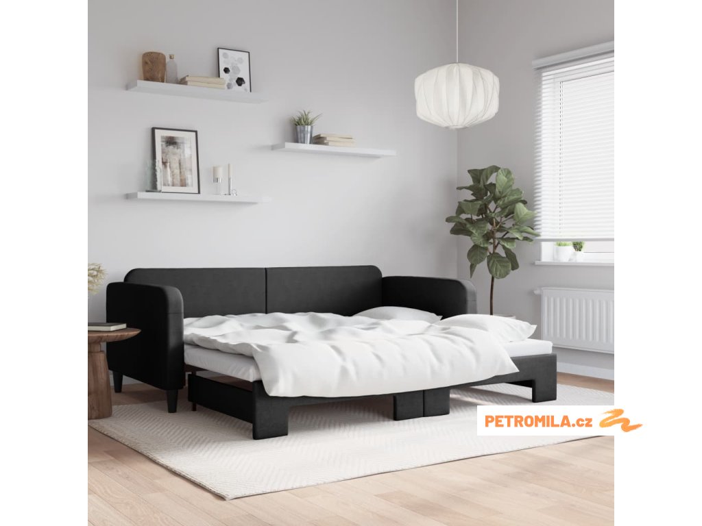 Válenda s přistýlkou černá 90 x 190 cm textil