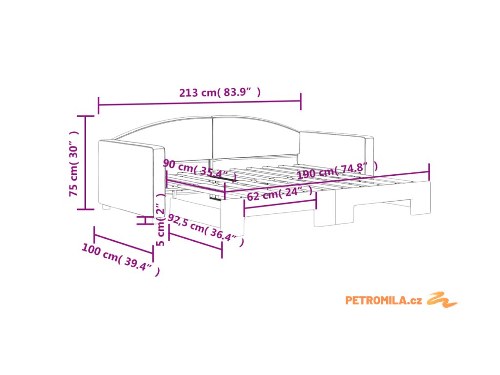 - Rozměry (nevysunuté): 213 x 100 x 75 cm (Š x H x V)