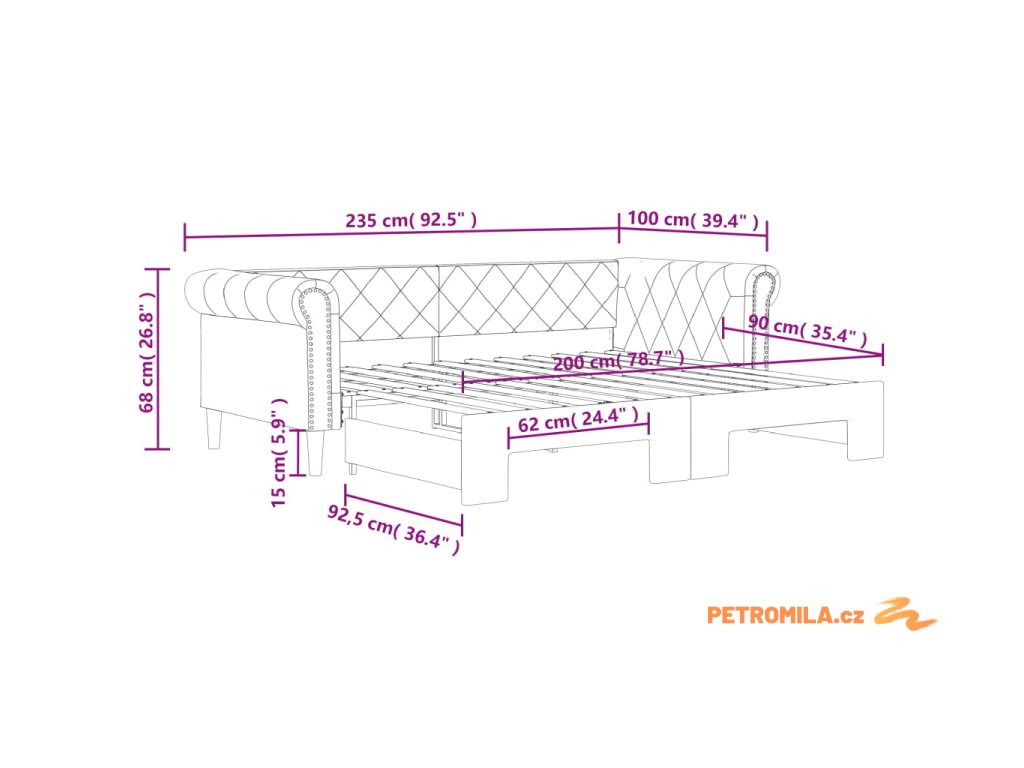 - Rozměry (nevysunuté): 235 x 100 x 68 cm (D x Š x V)