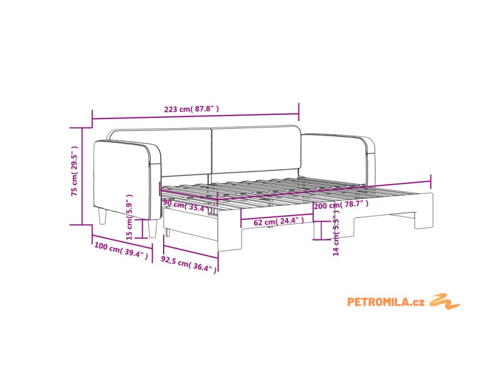 - Rozměry (nevysunuté): 223 x 100 x 75 cm (D x Š x V)