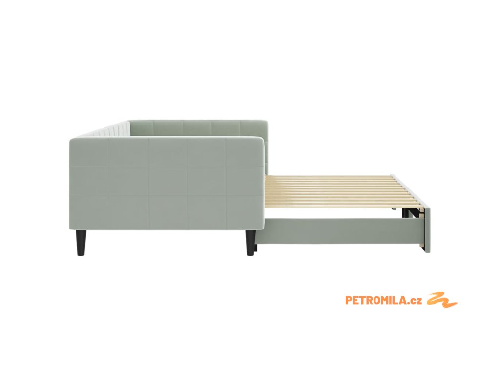 - Měkký samet a pevná konstrukce: Tato válenda má robustní rám zhotovený ze dřeva a kovu a je čalouněná měkkým a pohodlným sametem.