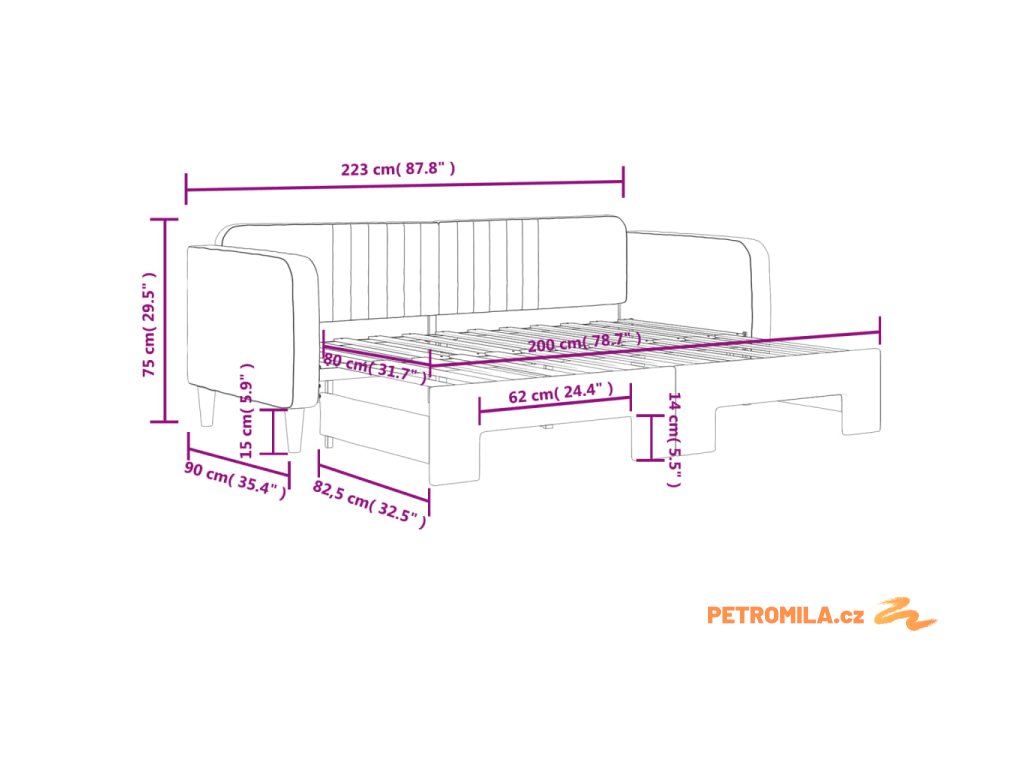 - Rozměry (nevysunuté): 223 x 90 x 75 cm (D x Š x V)