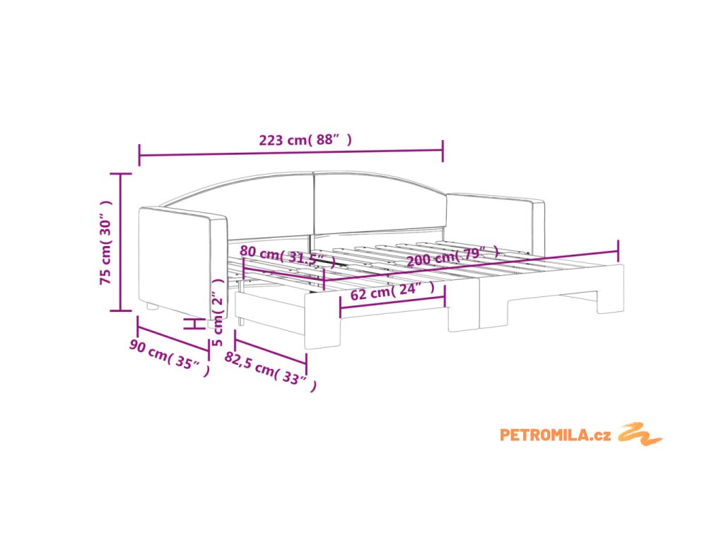 - Rozměry (nevysunuté): 223 x 90 x 75 cm (Š x H x V)