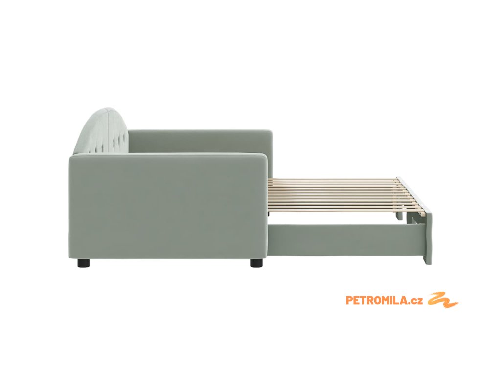 - Měkký samet a pevná konstrukce: Tato válenda má robustní rám zhotovený ze dřeva a kovu a je čalouněná měkkým a pohodlným sametem.