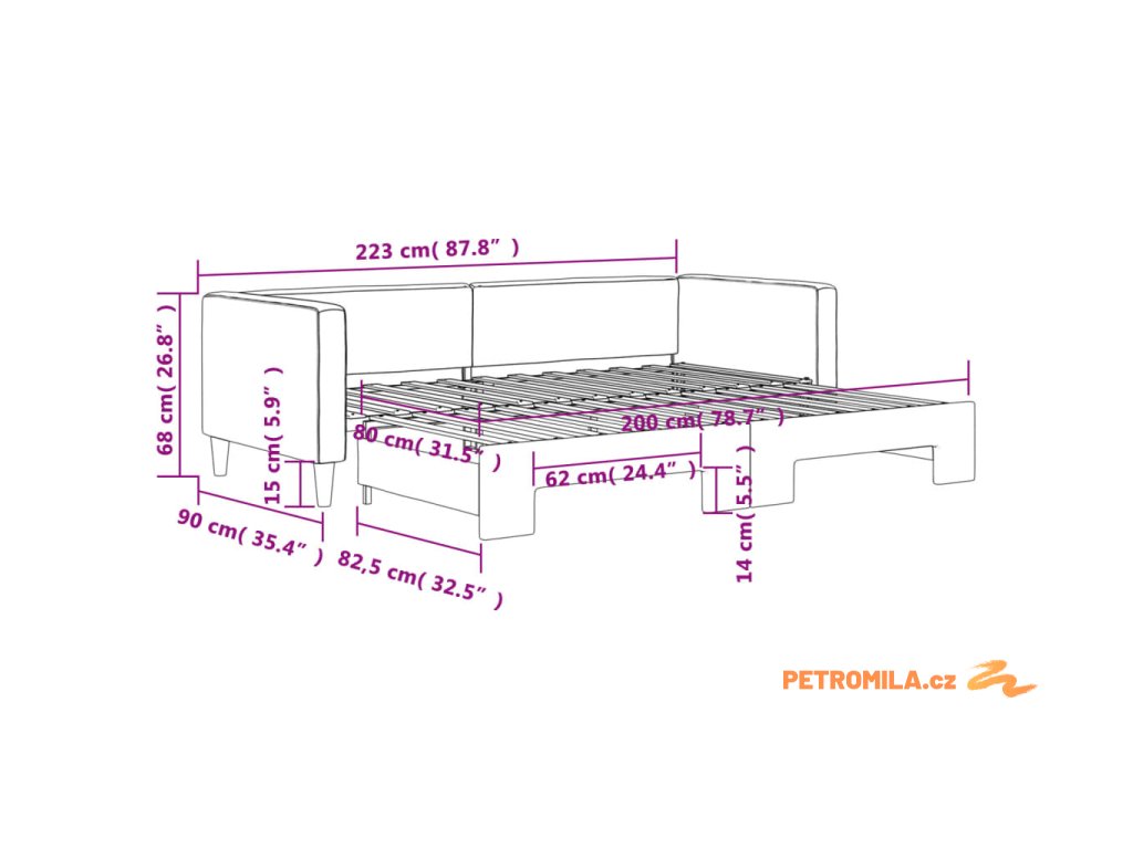 - Rozměry (nevysunuté): 223 x 90 x 68 cm (D x Š x V)
