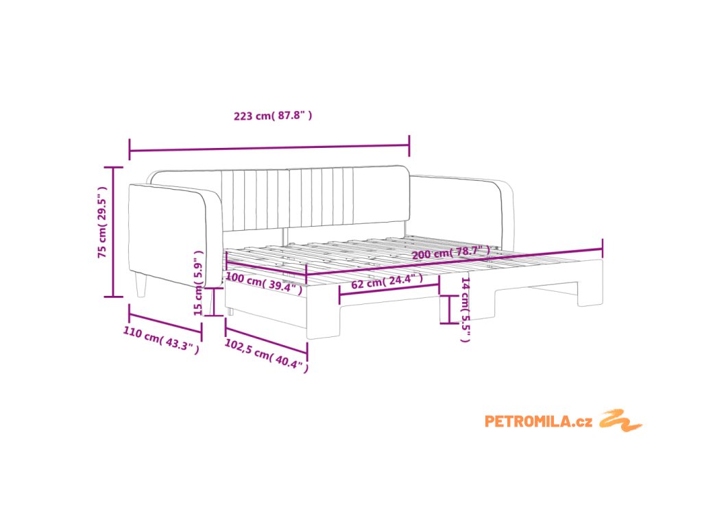 - Rozměry (nevysunuté): 223 x 110 x 75 cm (D x Š x V)