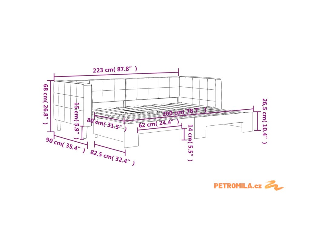- Rozměry (nevysunuté): 223 x 90 x 68 cm (D x Š x V)