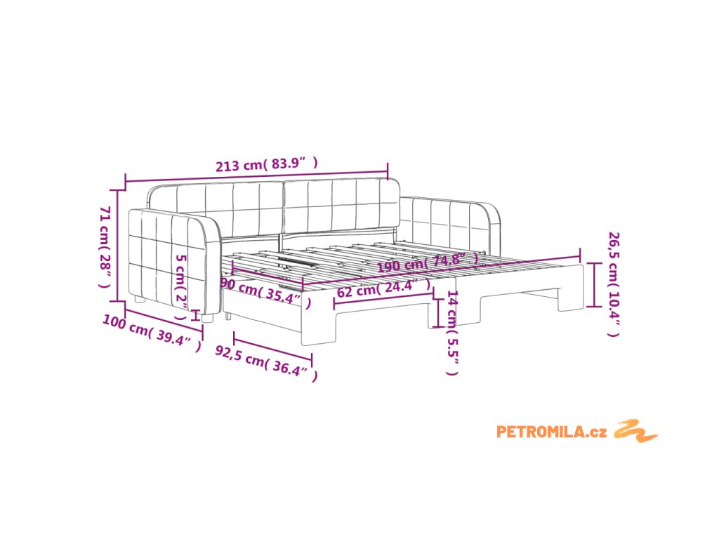 - Rozměry (nevysunuté): 213 x 100 x 71 cm (D x Š x V)