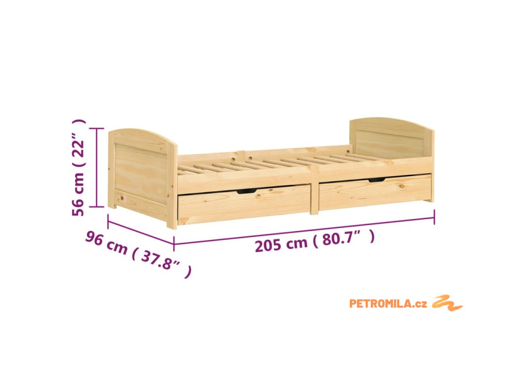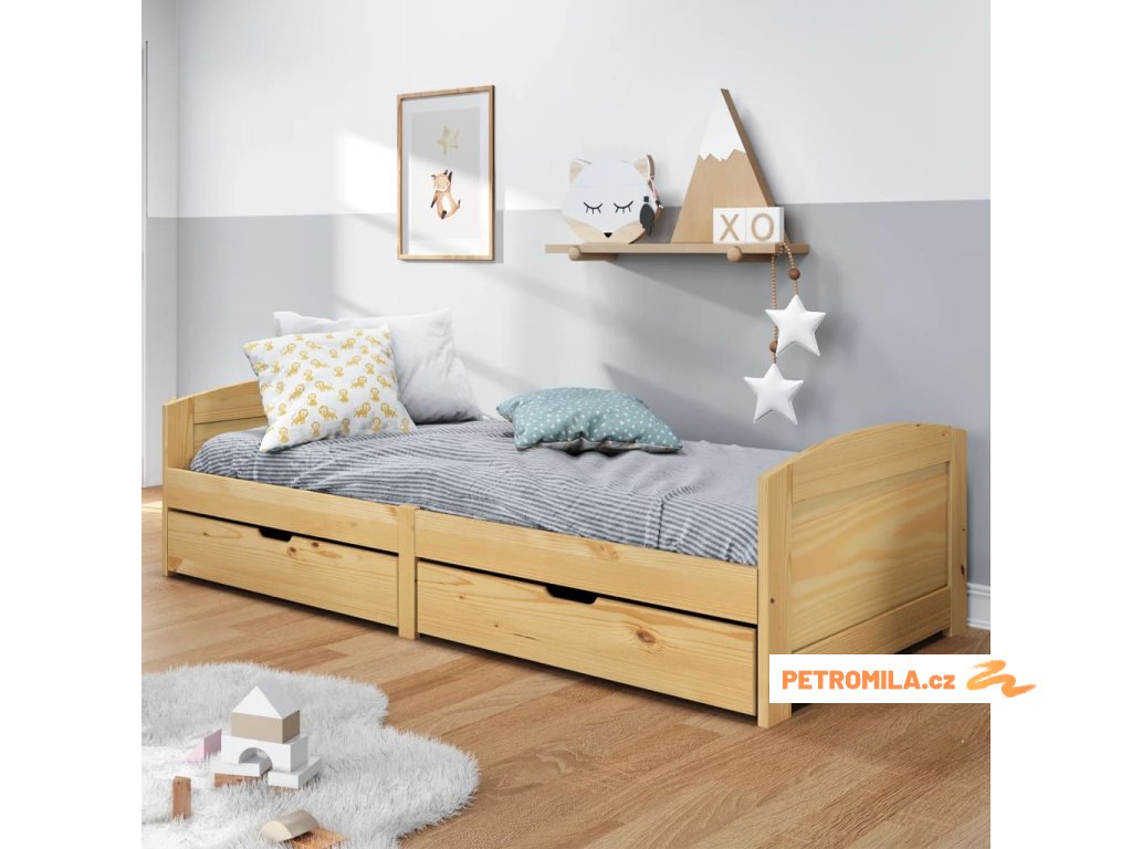 Válenda se 2 zásuvkami IRUN 90x200 cm masivní borové dřevo