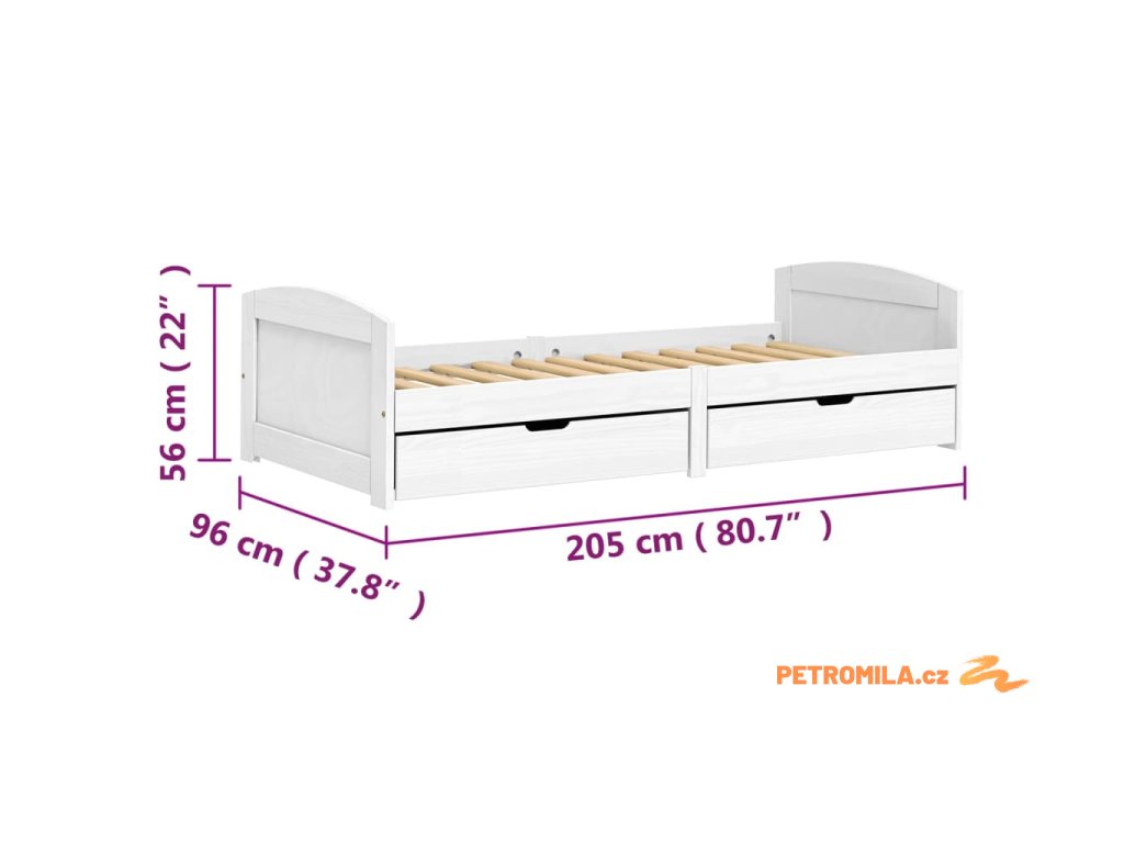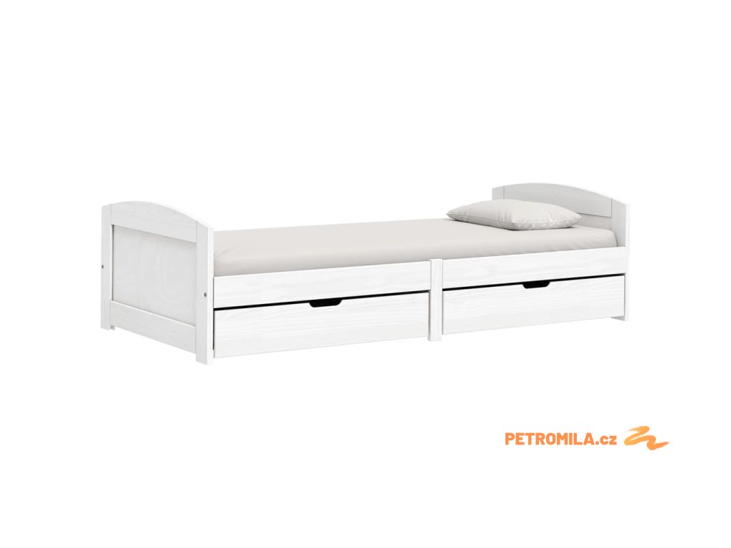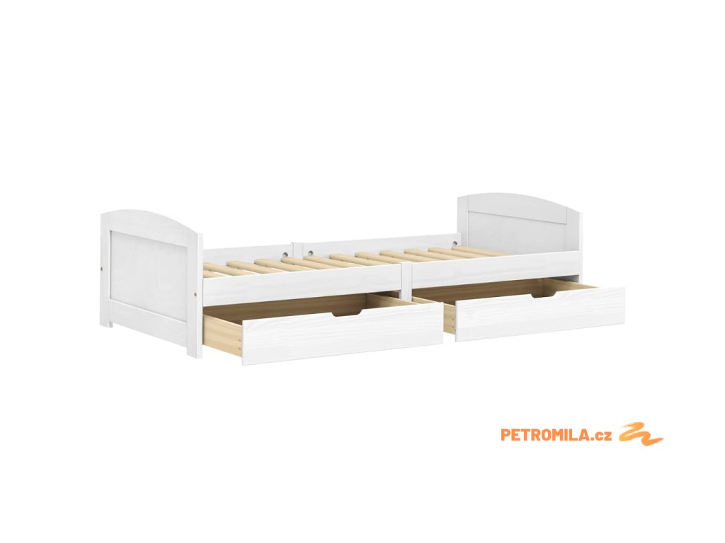 Válenda se 2 zásuvkami IRUN bílá 90x200 cm masivní borové dřevo