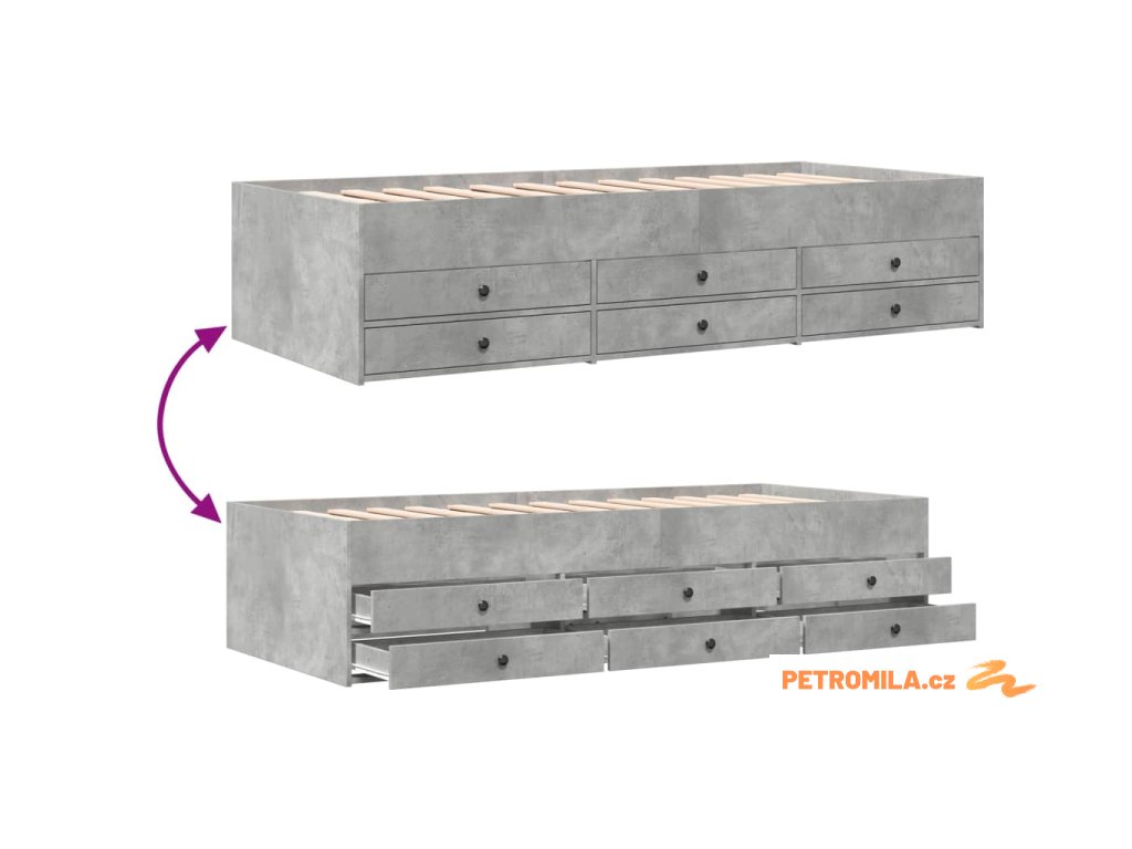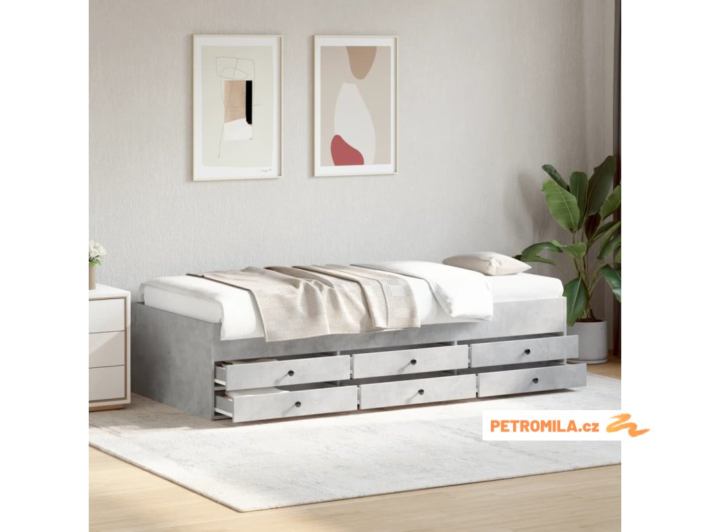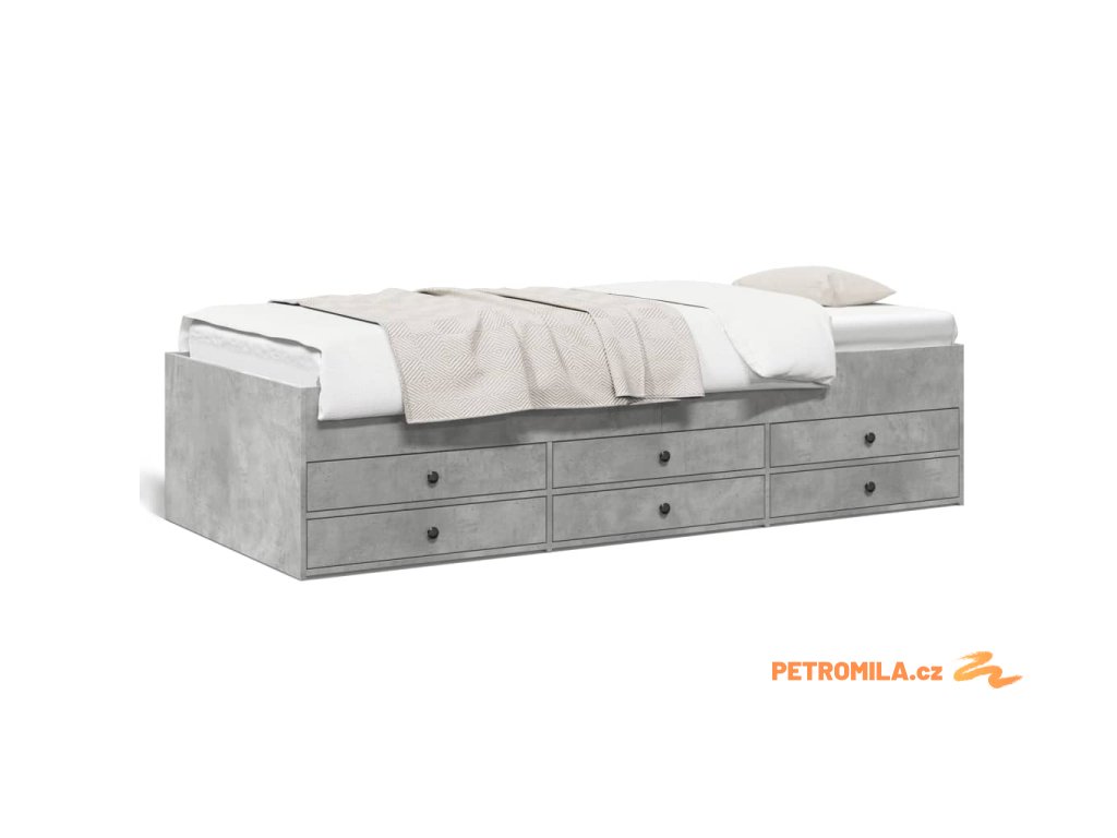 Válenda se zásuvkami bez matrace betonově šedá 90 x 190 cm