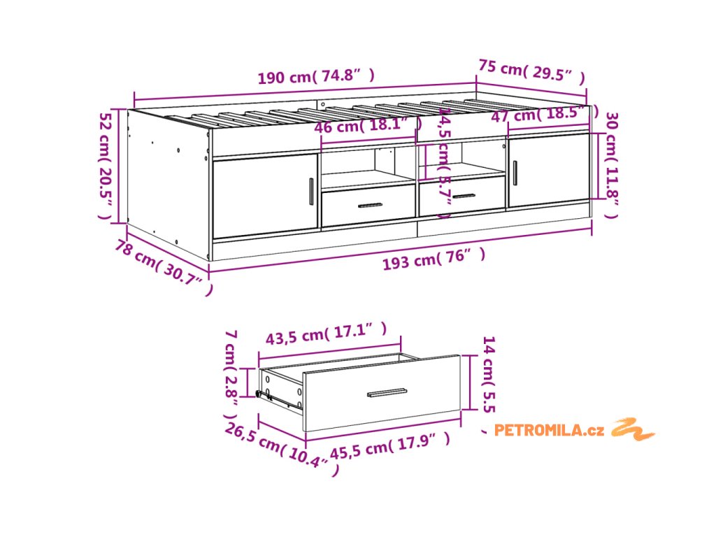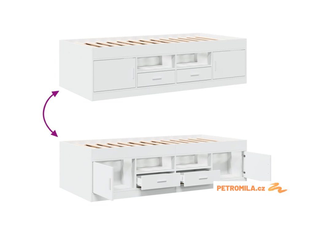 Válenda se zásuvkami bez matrace bílá 75 x 190 cm