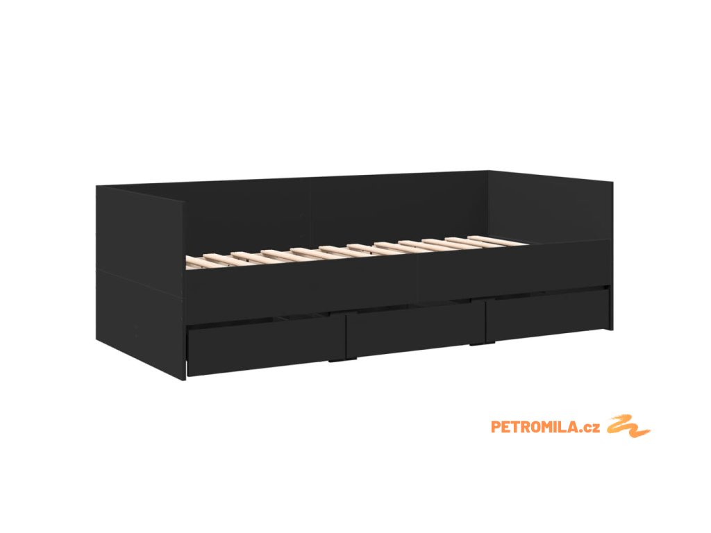 Válenda se zásuvkami bez matrace černá 75 x 190 cm