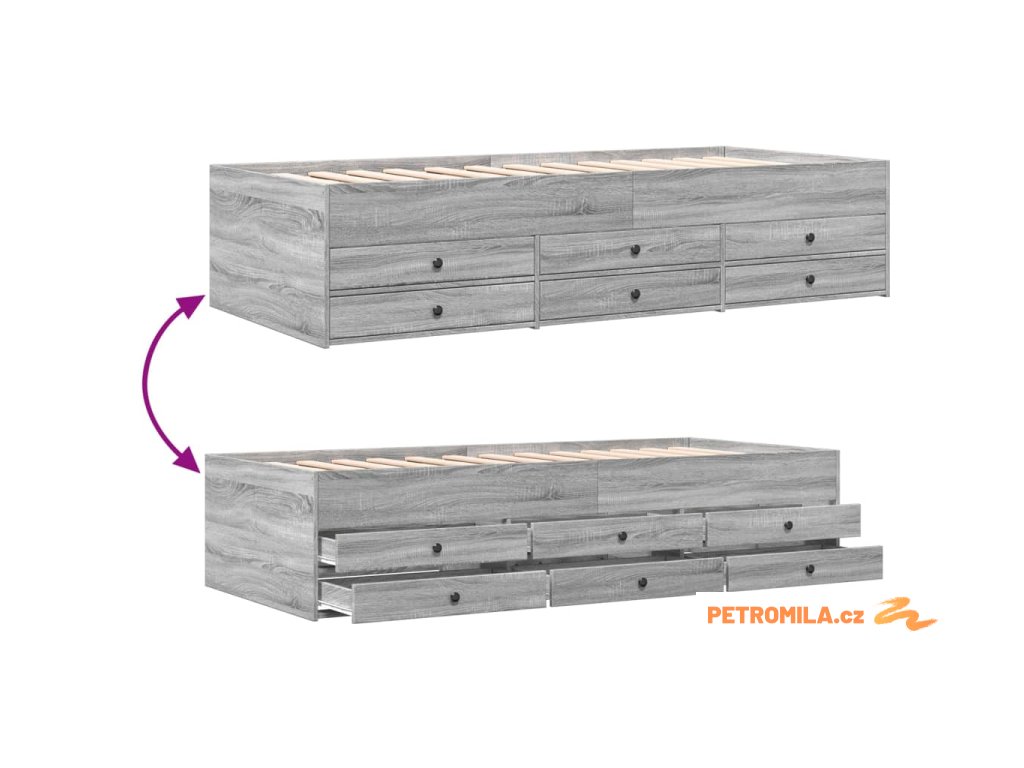Válenda se zásuvkami bez matrace dub sonoma 90 x 190 cm