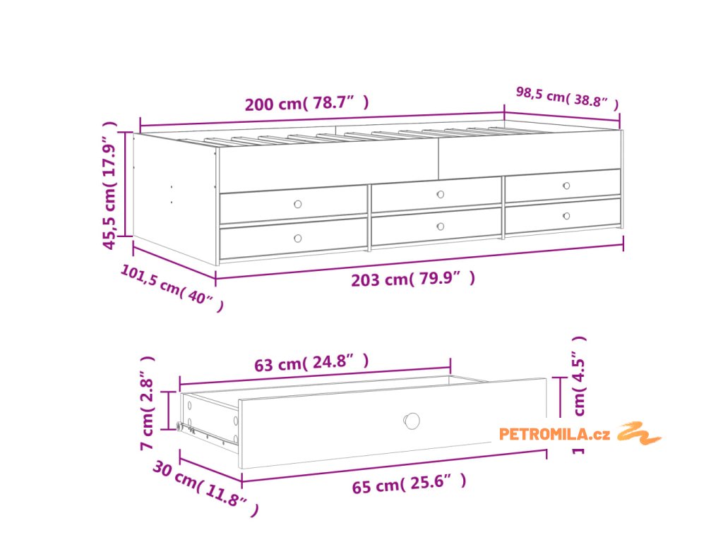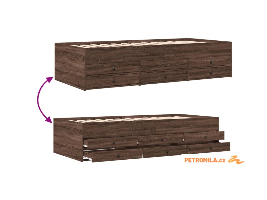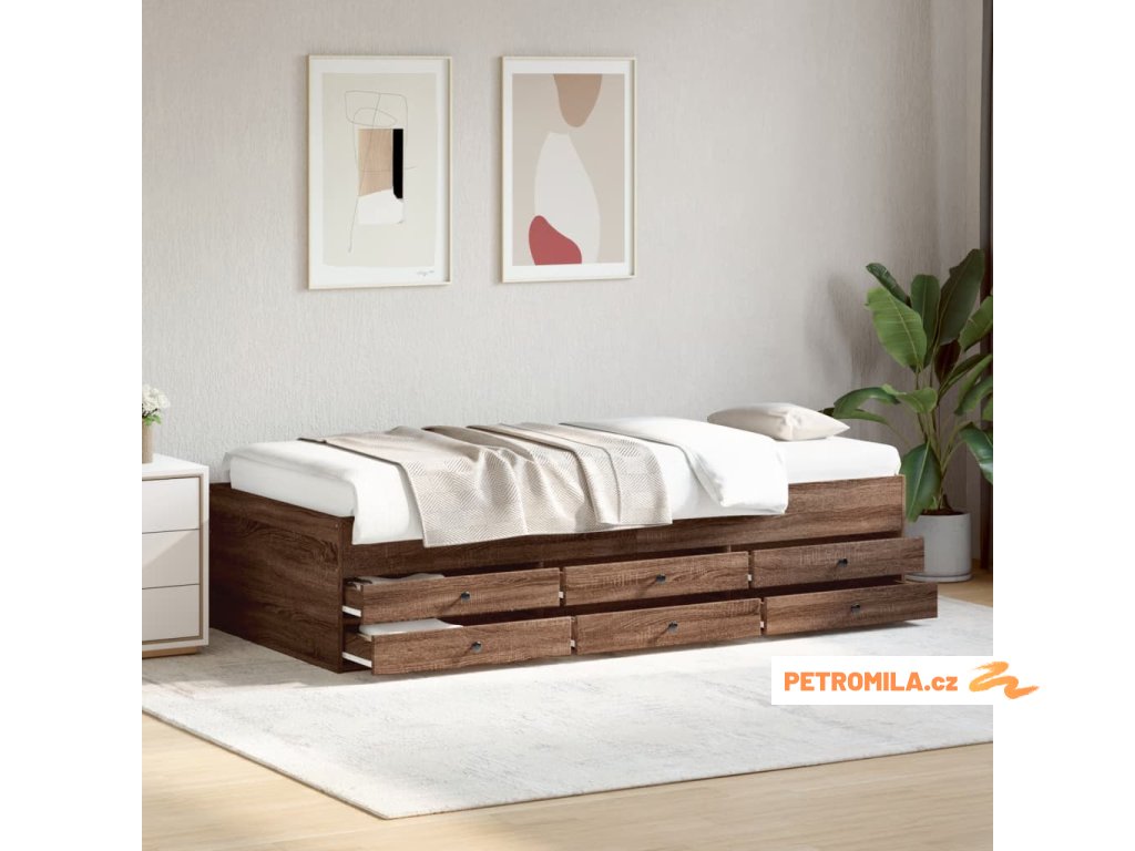 Válenda se zásuvkami bez matrace hnědý dub 100 x 200 cm