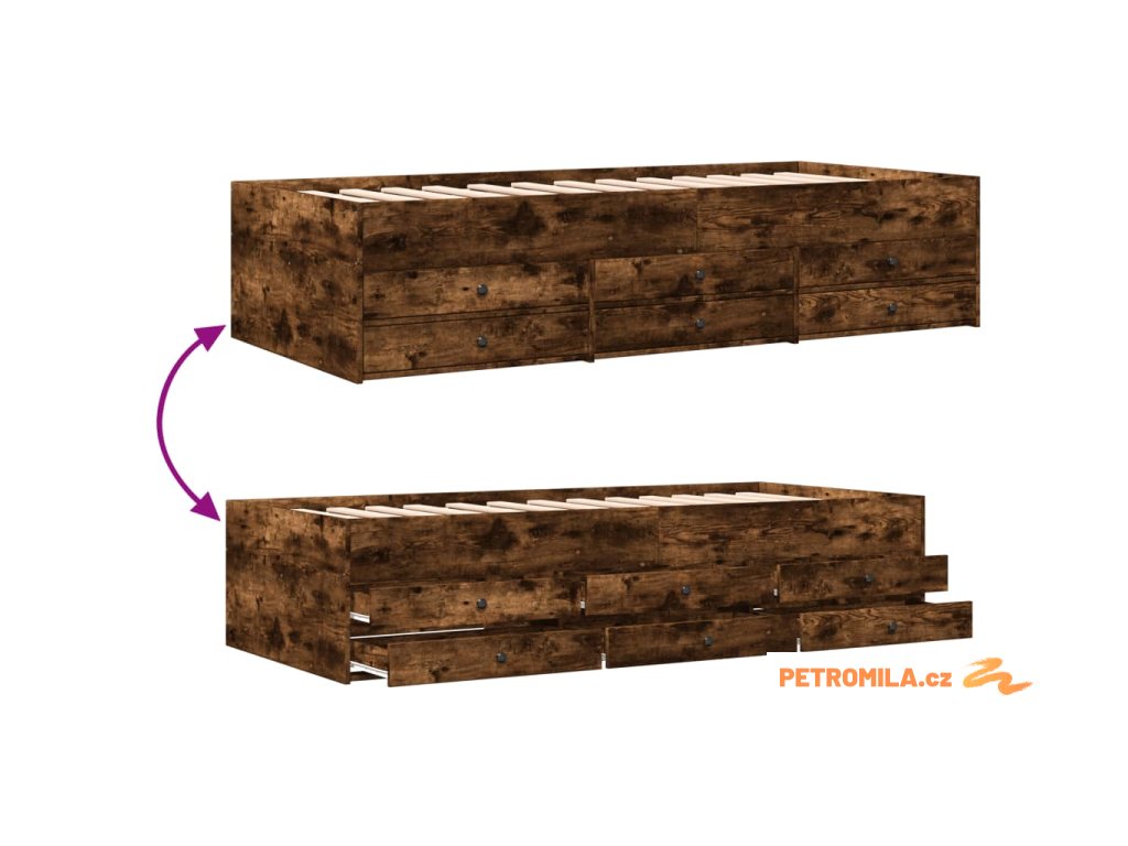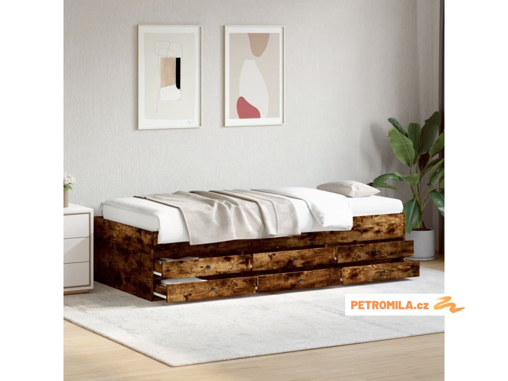 Válenda se zásuvkami bez matrace kouřový dub 100 x 200 cm