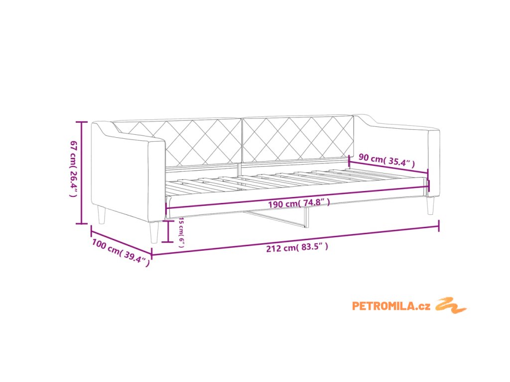 - Rozměry sedáku: 90 x 190 cm (Š x D)