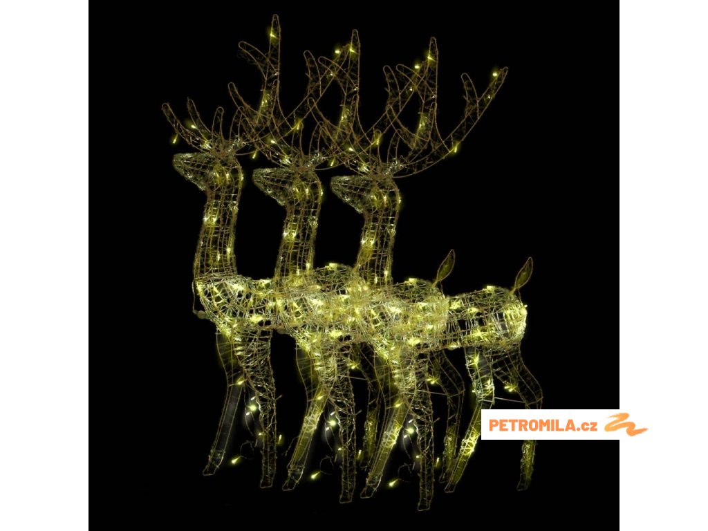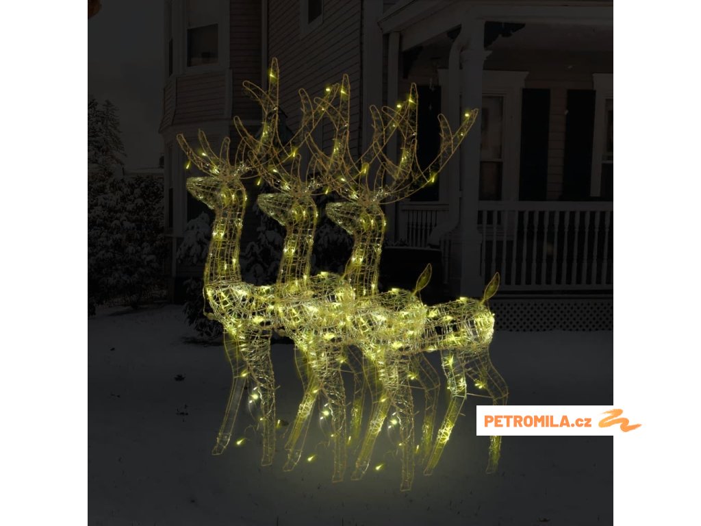 Vánoční dekorace akryloví sobi 3 ks 120 cm teplé bílé světlo
