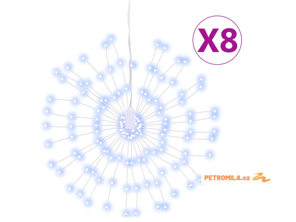 Vánoční hvězdicová světla 8ks 140 studeně bílých LED diod 17 cm