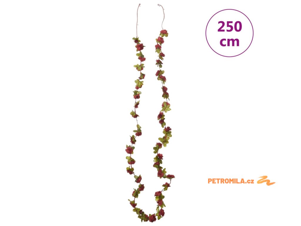 Vánoční květinové girlandy 6 ks vínové 250 cm