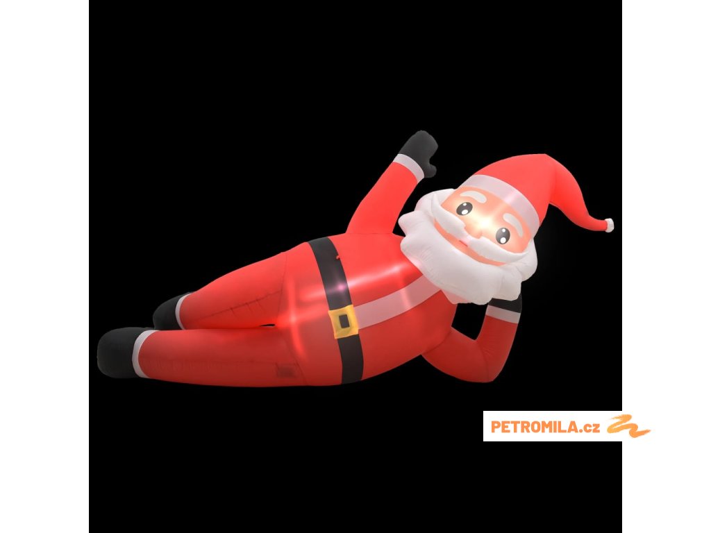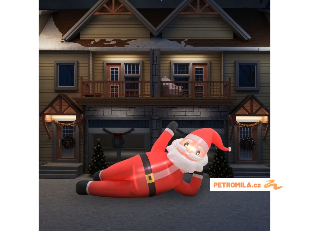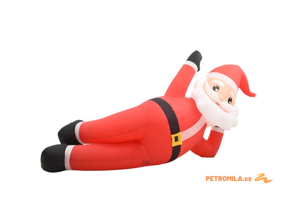 Obří ležící Santa Claus je rozhodně dekorací, která bude dominovat vaší vánoční výzdobě. Nafukovací Santa je vyrobený z kvalitní polyesterové tkaniny, takže je lehký, nepodléhá povětrnostním vlivům, skvěle vzdoruje vodě a celkově je velice odolný. Santa se sám nafoukne během několika sekund. Má v sobě zabudované 1 dmychadlo, které uvnitř výborně drží vzduch. Po svátcích tuto dekoraci snadno vyprázdníte a uskladníte až do dalších Vánoc. Vánoční nafukovadlo je vybavené 5 vysoce výkonnými LED diodami, jež vyzařují jasné světlo, a přesto jsou velmi energeticky efektivní. Santu Clause jednoduše upevníte k zemi dodanými zemními kolíky a lany, které jsou součástí balení.