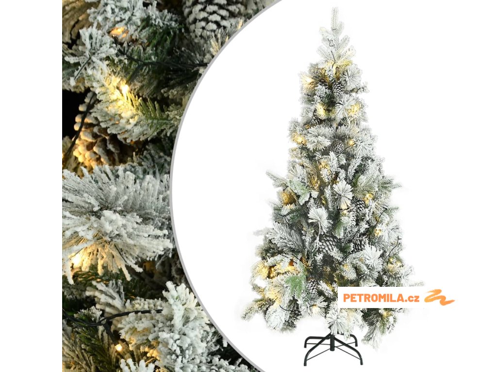 Tento krásný vánoční stromek má větve vyrobené z PVC a PE. Větve stromku jsou připevněny ke středovému sloupku pomocí systému pantů. Tím se větve automaticky posunou do správné polohy. Šišky a jehličí pokryté bílým sněhovým popraškem navíc dodává tomuto vánočnímu stromku na eleganci. Je vybaven energeticky úspornými LED světly, krásně svítí a vytváří útulnou vánoční atmosféru. Přiložený ocelový stojan poskytuje stromku optimální stabilitu.