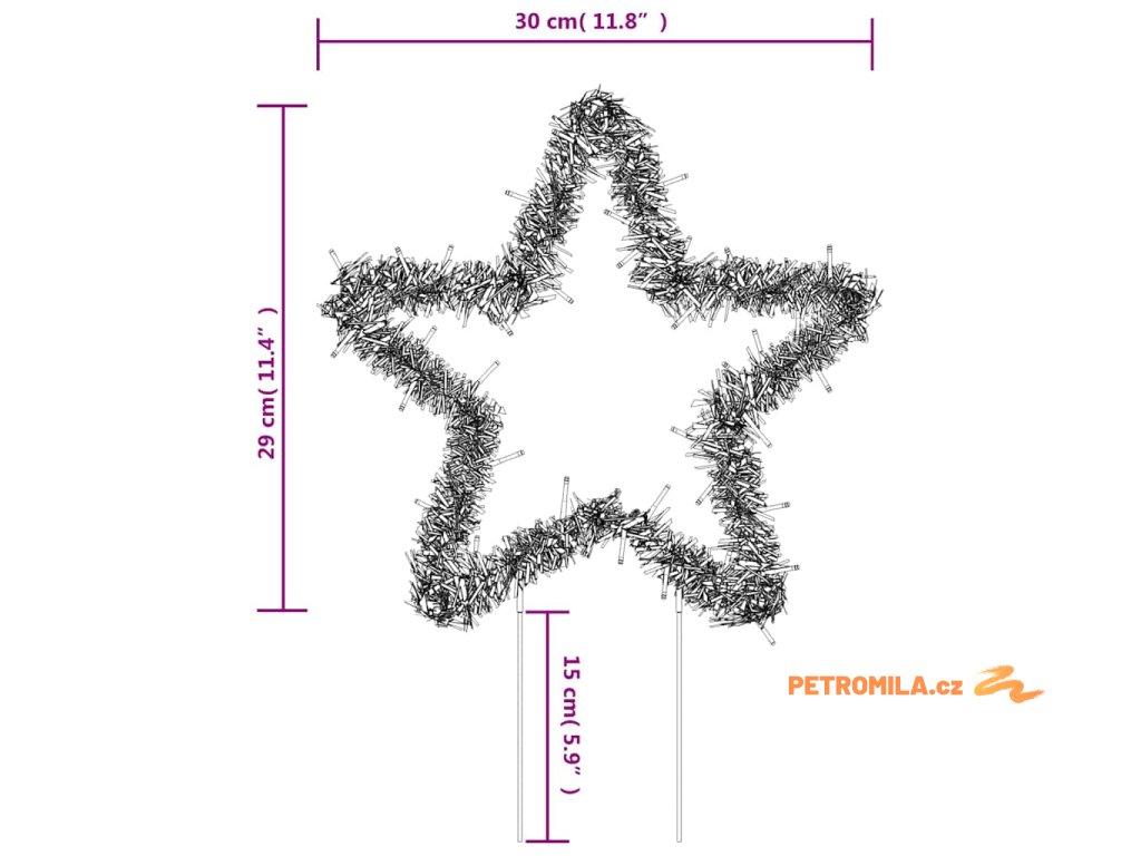 - Rozměry vánočního světla (bez zemních hrotů): 30 x 29 cm (Š x V)