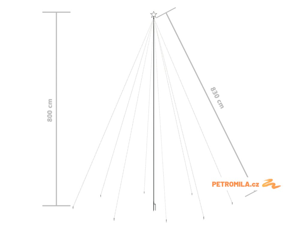 Vánoční světelný strom dovnitř i ven 1300 LED barevný 8 m