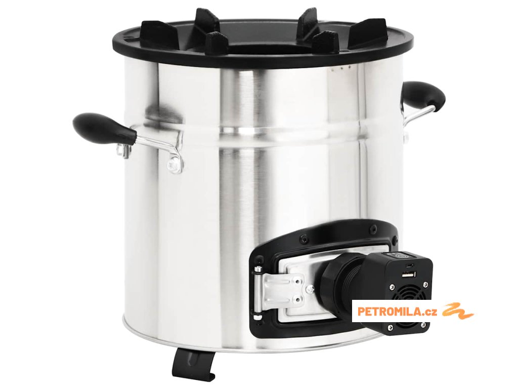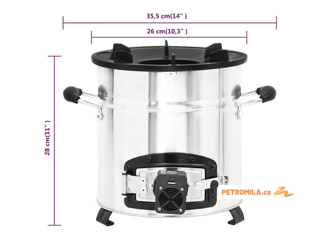 Vařič na dřevo s USB ventilátorem stříbrný 35,5x26x28 cm ocel