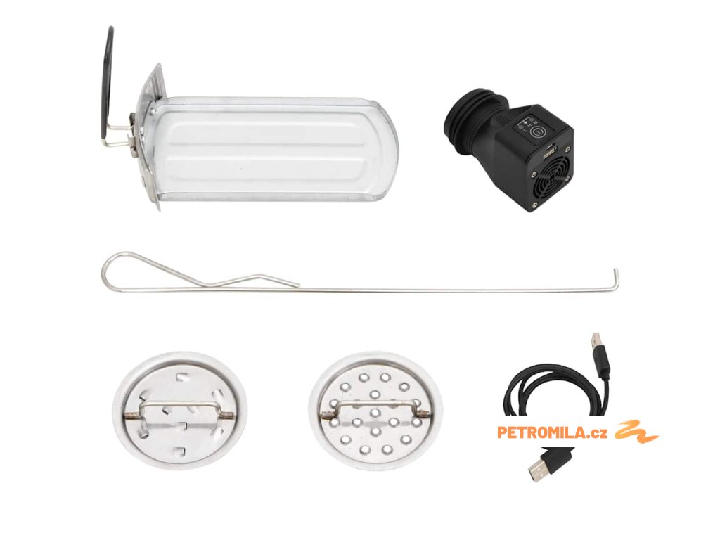 - Přenosný ventilátor: Ventilátor se 3 provozními režimy může vařič na dřevo rychle zahřát. Není tedy potřeba do něj foukat ústy. Intenzitu můžete ovládat jedním nebo vícenásobným stisknutím tlačítka.