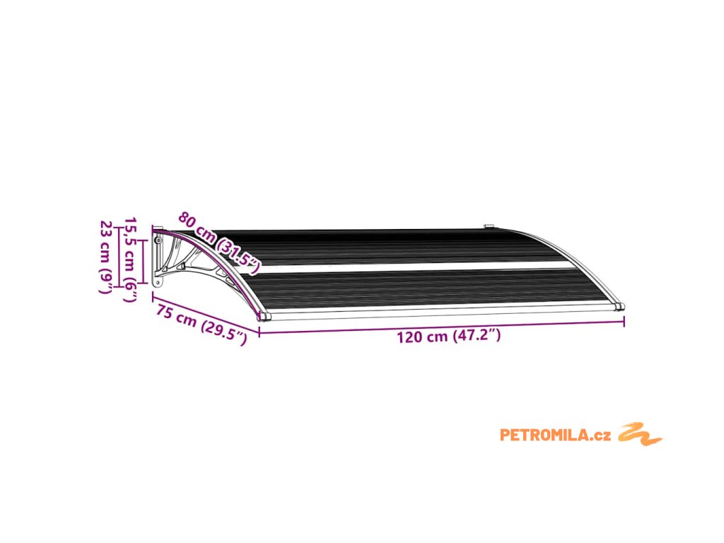 Vchodová stříška černá 120 x 75 cm polykarbonát