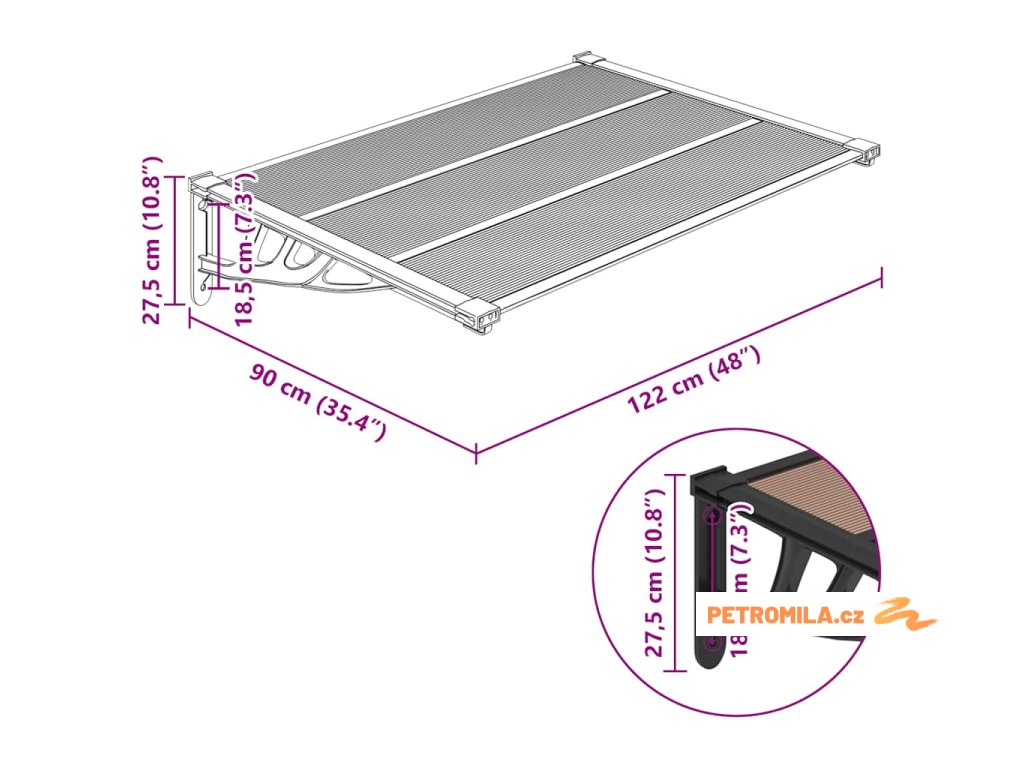 - Odolný materiál: Duté polykarbonátové panely stříšky nad vchodové dveře jsou neuvěřitelně pevné a odolné proti povětrnostním vlivům a korozi.