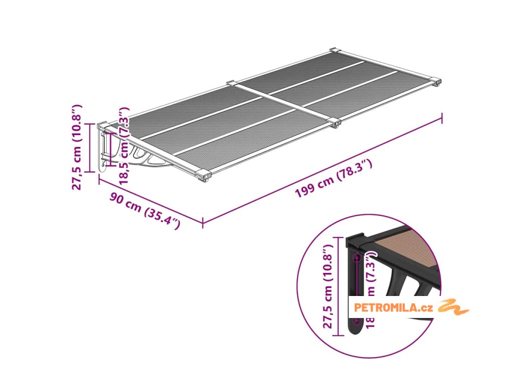 Vchodová stříška černá 199 x 90 cm polykarbonát