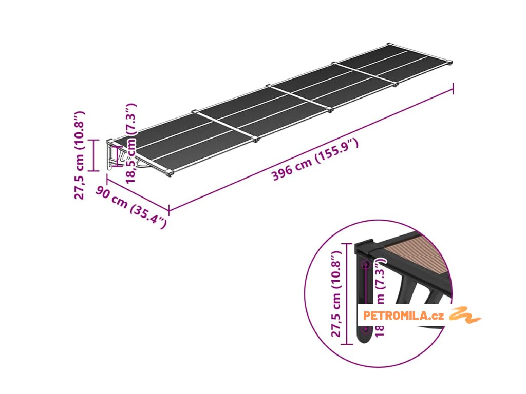 Vchodová stříška černá 396 x 90 cm polykarbonát