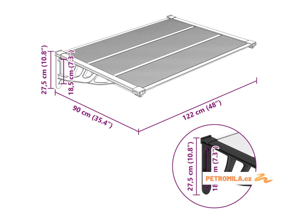 - Snadná instalace: Veškeré potřebné montážní příslušenství stříšky nad dveře je součástí dodávky.
