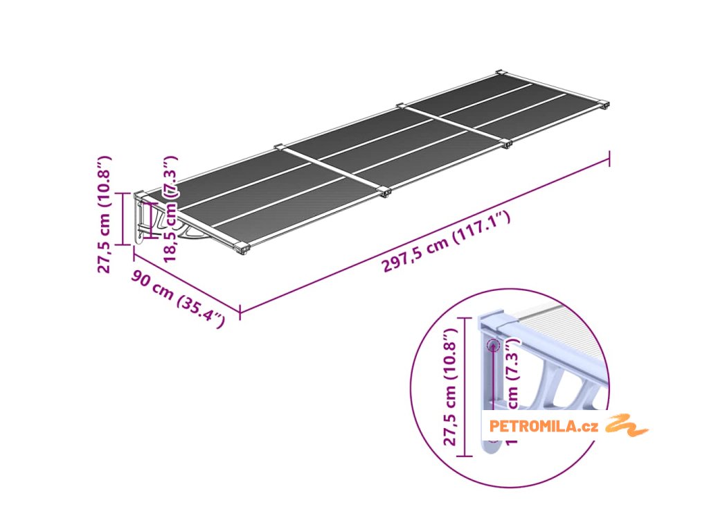 Vchodová stříška šedá a průhledná 297,5 x 90 cm polykarbonát