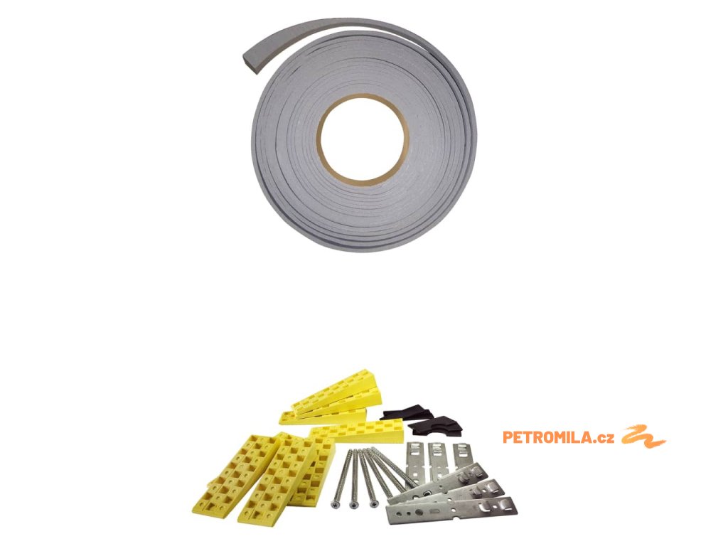 - Dodávka obsahuje 8 plastových klínů, 6 podložek, 6 hmoždinek a 6 kovových hmoždinek (montážních šroubů)