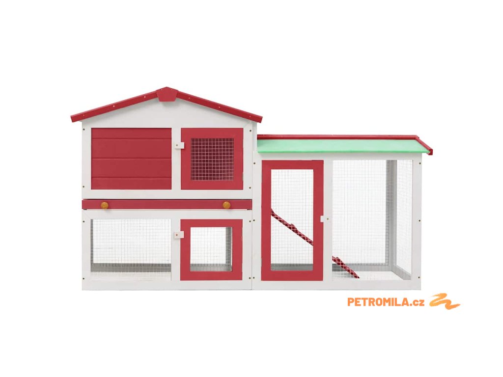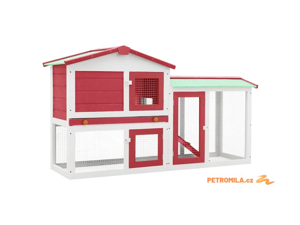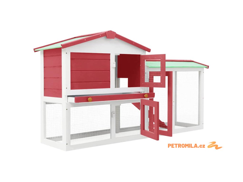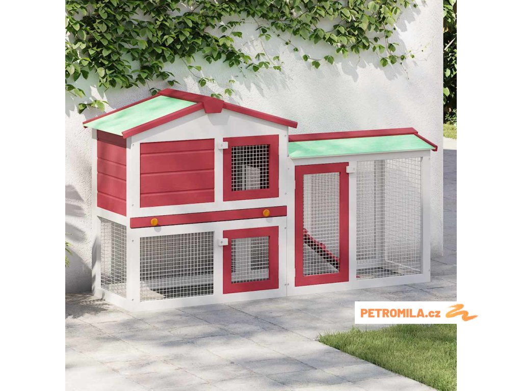 Velká venkovní králíkárna červeno-bílá 145 x 45 x 84 cm dřevo
