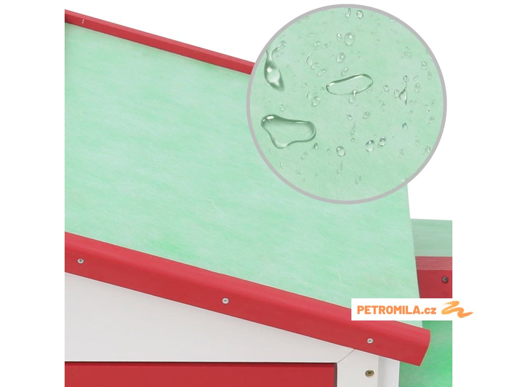 Je postavená z masivního jedlového dřeva s nátěrem, který je pro zvířata bezpečný a dřevu zaručuje dlouhou životnost. Asfaltová střecha chrání vaše chlupaté přátele před nepřízní počasí. Zvýšené okraje udrží vaše malá zvířata v bezpečí, suchu a teple, zejména za deštivých dnů. Do pelíšku se váš mazlíček snadno vyšplhá po přiložené rampě. Kotec je navržený pro nenáročnou údržbu a má odnímatelné dno pro jednodušší čištění. Výběh s odolným oplocením zajišťuje dostatečnou ventilaci a brání domácím mazlíčkům ve výletech ven, zatímco dravce naopak nepustí dovnitř. Uzamykatelná dvířka chrání vaše mazlíčky a umožňují bezproblémový přístup.