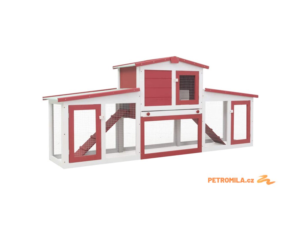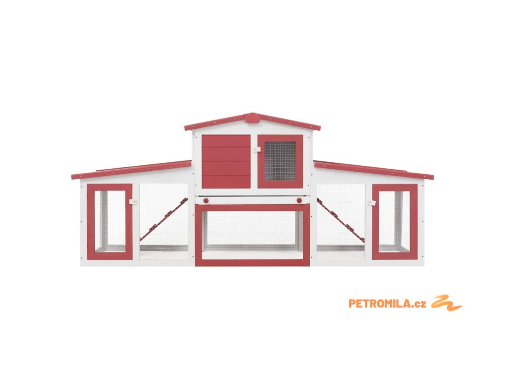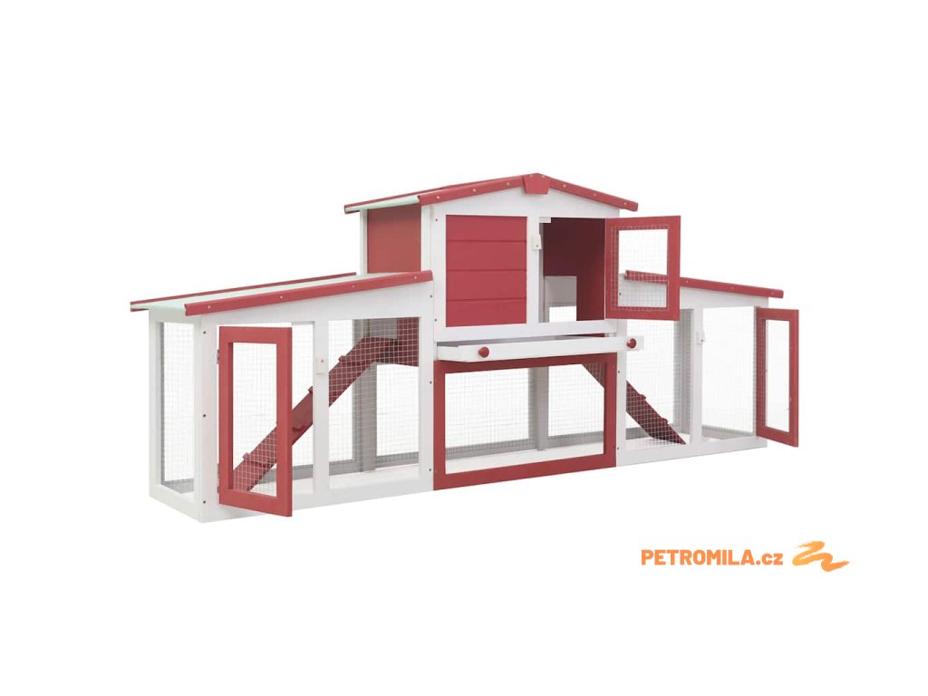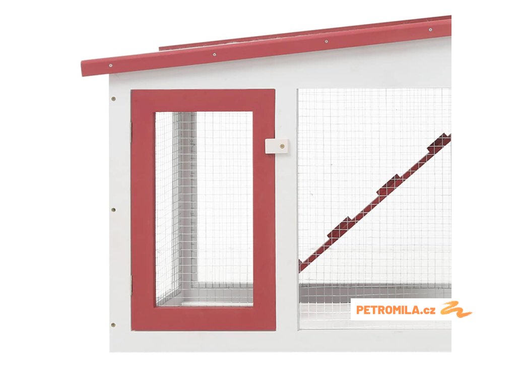 Velká venkovní králíkárna červeno-bílá 201 x 45 x 85 cm dřevo