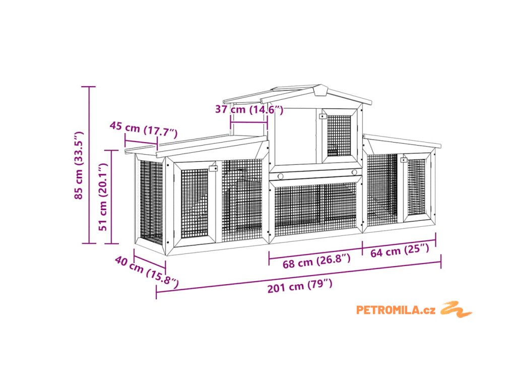Je postavená z natíraného masivního jedlového dřeva, které je pro zvířata bezpečné a má dlouhou životnost. Asfaltová střecha chrání vaše chlupaté přátele před nepřízní počasí. Zvýšené okraje udrží vaše malá zvířata v bezpečí, suchu a teple, zejména za deštivých dnů. Obě strany jsou vybavené rampou, takže váš mazlíček může snadno vyšplhat do pelíšku. Kotec je navržený pro nenáročnou údržbu a má odnímatelné dno pro jednodušší čištění. Výběh s odolným oplocením zajišťuje dostatečnou ventilaci a brání domácím mazlíčkům ve výletech ven, zatímco dravce naopak nepustí dovnitř. Uzamykatelná dvířka chrání vaše mazlíčky a umožňují bezproblémový přístup.