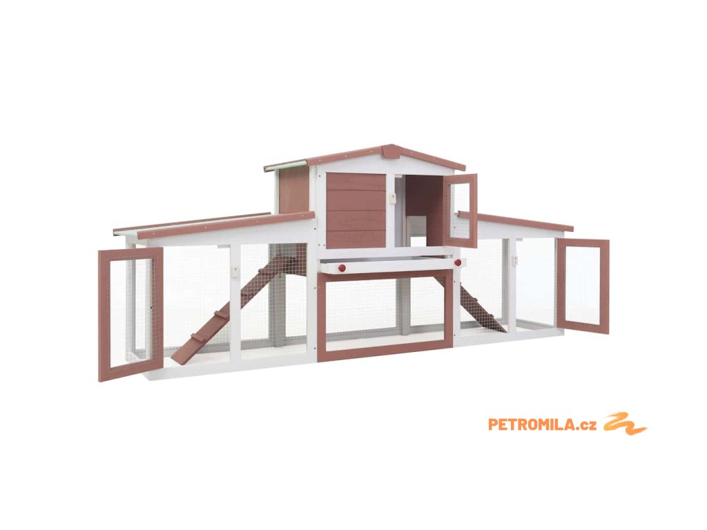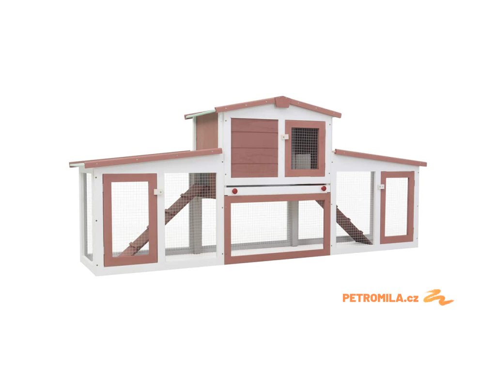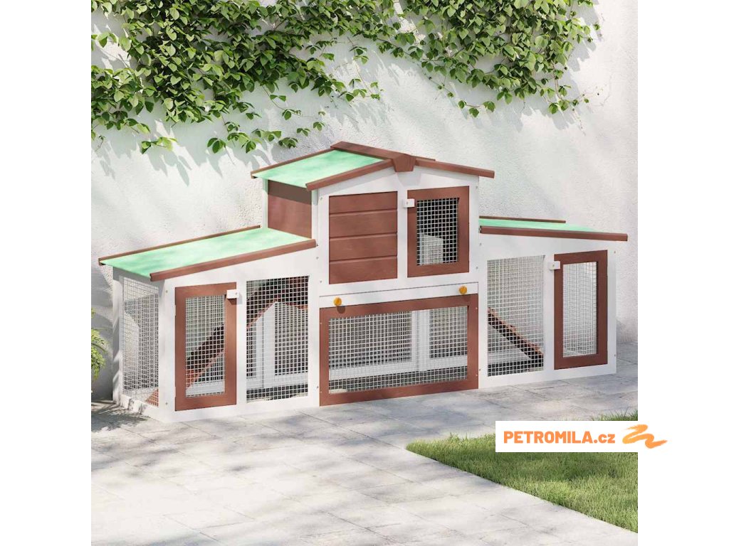 Velká venkovní králíkárna hnědo-bílá 201 x 45 x 85 cm dřevo