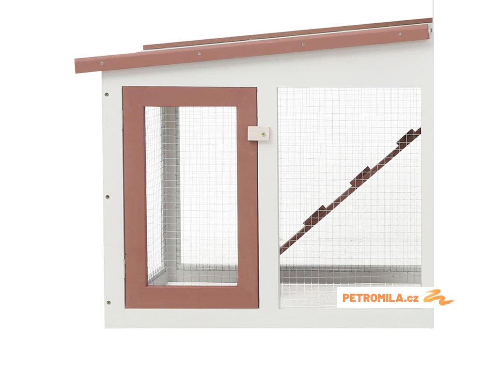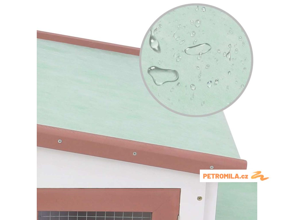 Je postavená z natíraného masivního jedlového dřeva, které je pro zvířata bezpečné a má dlouhou životnost. Asfaltová střecha chrání vaše chlupaté přátele před nepřízní počasí. Zvýšené okraje udrží vaše malá zvířata v bezpečí, suchu a teple, zejména za deštivých dnů. Obě strany jsou vybavené rampou, takže váš mazlíček může snadno vyšplhat do pelíšku. Kotec je navržený pro nenáročnou údržbu a má odnímatelné dno pro jednodušší čištění. Výběh s odolným oplocením zajišťuje dostatečnou ventilaci a brání domácím mazlíčkům ve výletech ven, zatímco dravce naopak nepustí dovnitř. Uzamykatelná dvířka chrání vaše mazlíčky a umožňují bezproblémový přístup.