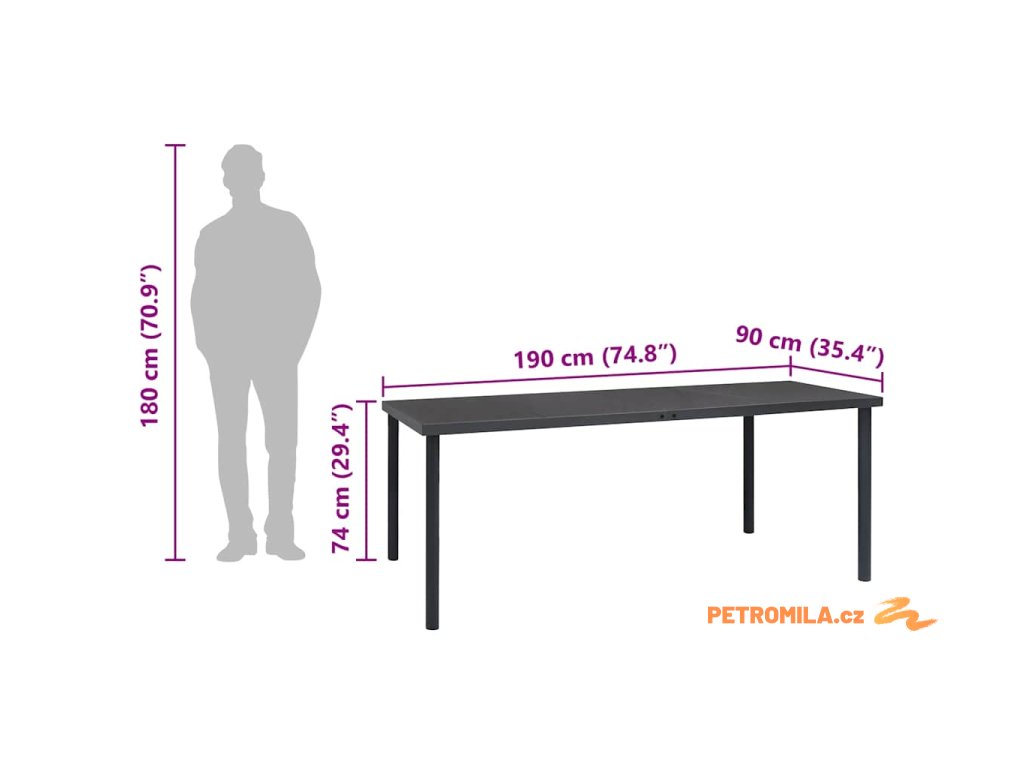 Venkovní jídelní stůl antracitový 190 x 90 x 74 cm ocel