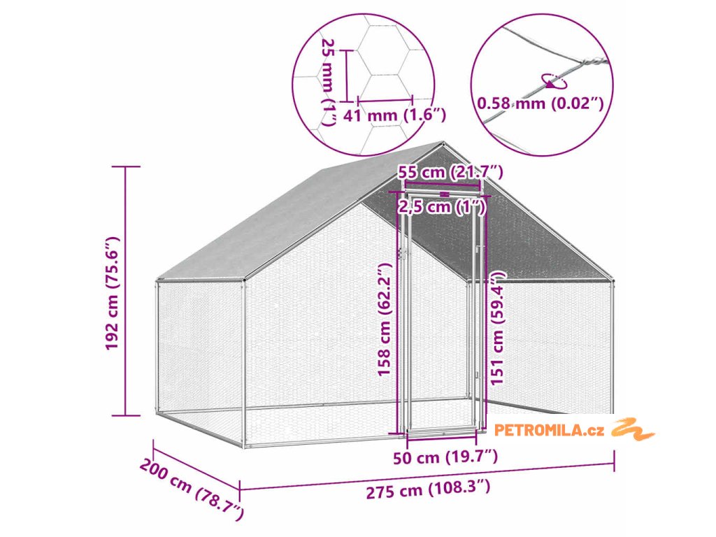 Venkovní klec pro kuřata 2,75 x 2 x 1,92 m pozinkovaná ocel