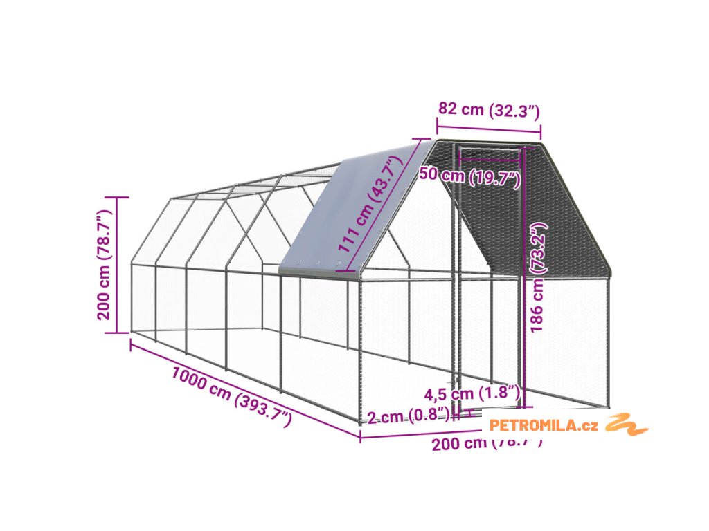 Tento výběh pro kuřata je vyroben z pozinkované oceli. Má polyethylenovou střechu, která je voděodolná a odolná vůči UV záření. Brána je vybavena zámkem, který zajišťuje větší bezpečnost a ochranu vašich malých zvířat.