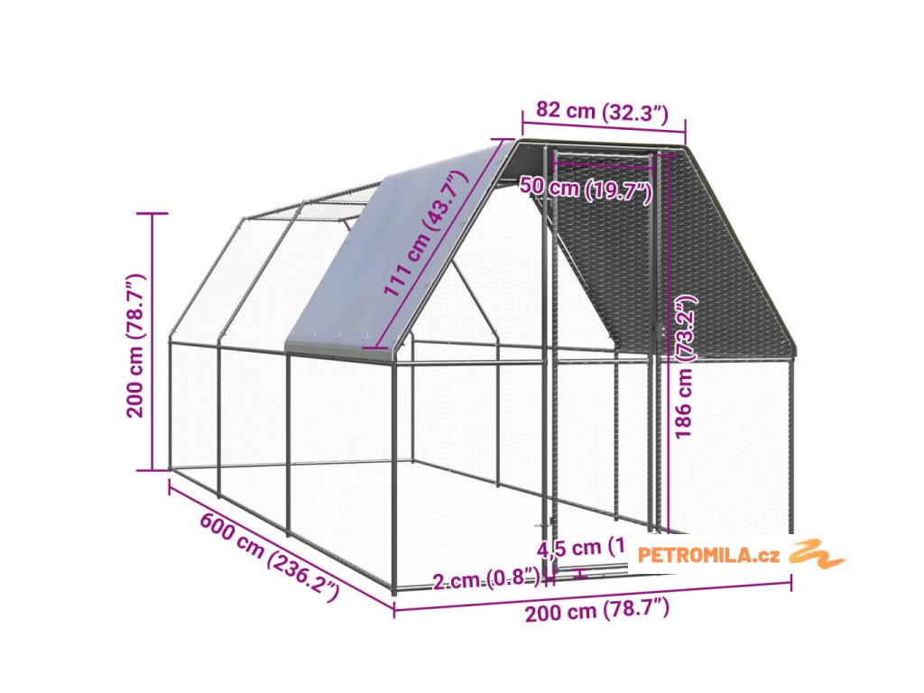 Tento výběh pro kuřata je vyroben z pozinkované oceli. Má polyethylenovou střechu, která je voděodolná a odolná vůči UV záření. Brána je vybavena zámkem, který zajišťuje větší bezpečnost a ochranu vašich malých zvířat.